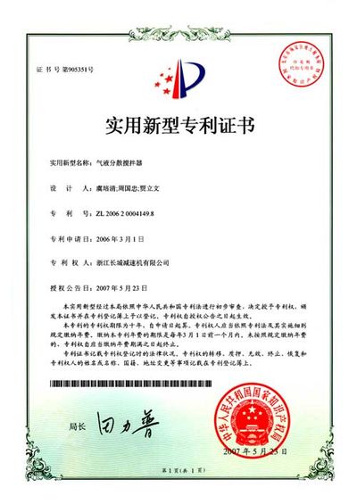 ZL 2006 2 0004149.8 氣液分散攪拌器