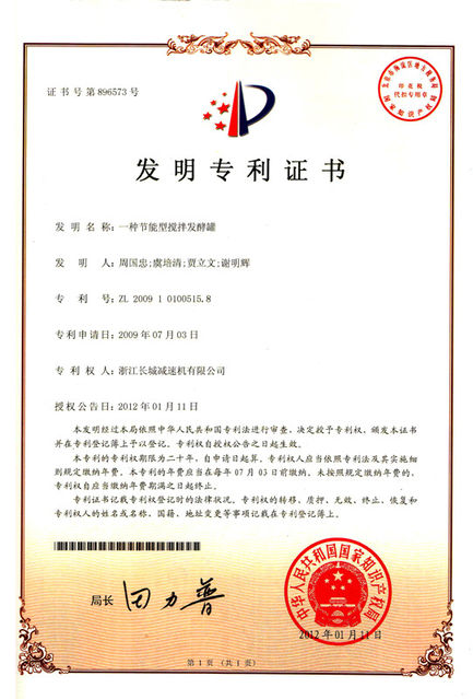 ZL 2009 1 0100515.8 一種節(jié)能型攪拌發(fā)酵罐