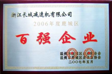 公司獲2006年度鹿城區(qū)百?gòu)?qiáng)企業(yè)榮譽(yù)