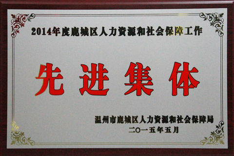 我司榮獲“2014年度鹿城區(qū)人力資源和社會(huì)保障工作先進(jìn)集體”稱號(hào)