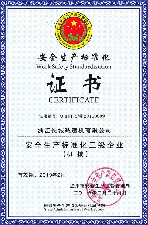 熱烈祝賀我司被評(píng)為“2016年安全生產(chǎn)標(biāo)準(zhǔn)化-三級(jí)達(dá)標(biāo)企業(yè)”