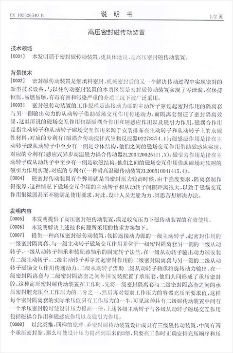 熱烈祝賀我司“高壓密封磁傳動裝置”獲國家發(fā)明專利