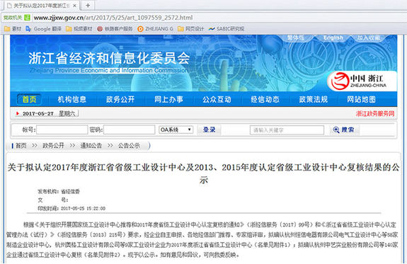 熱烈慶賀我司申請認定2017年度浙江省省級工業(yè)設計中心成功通過